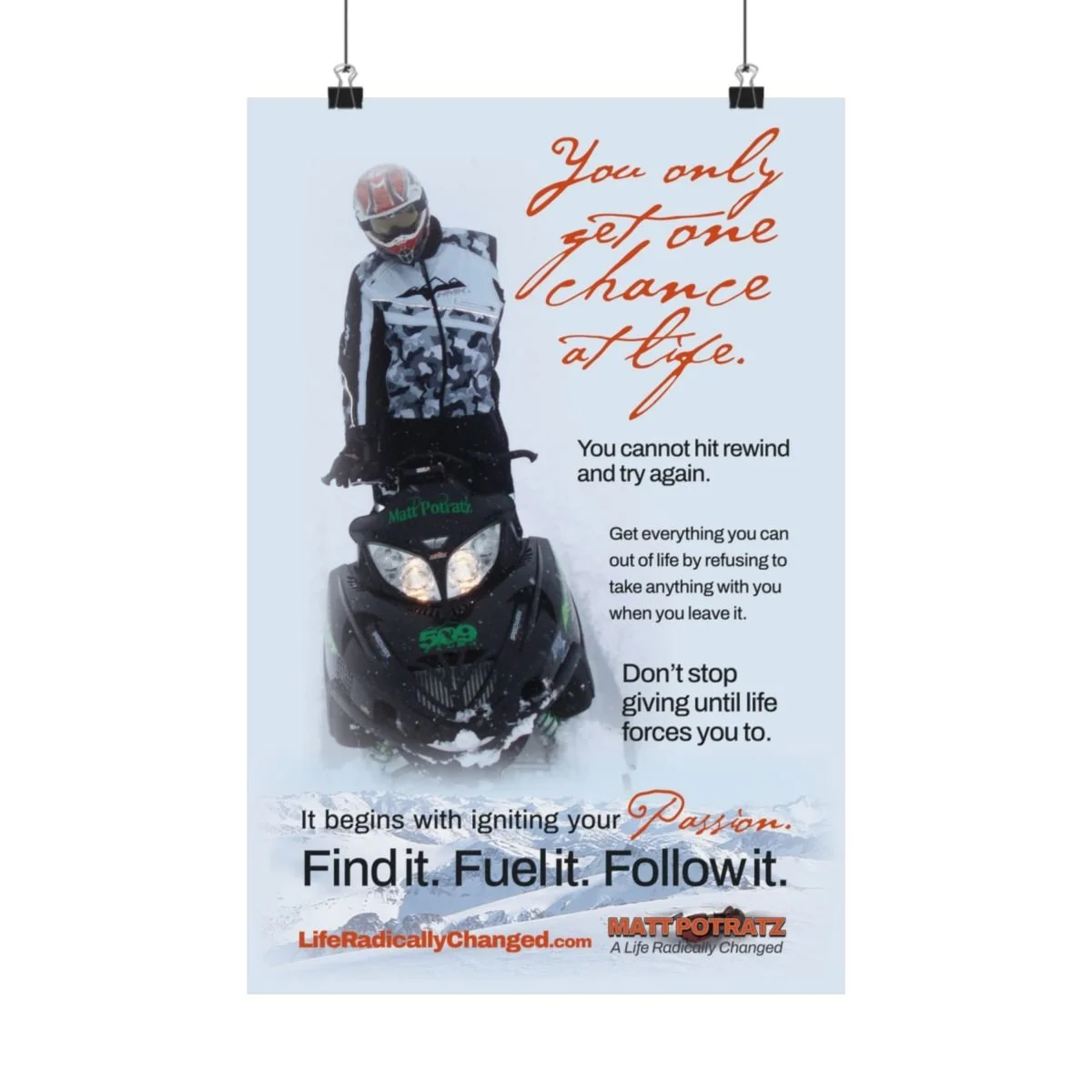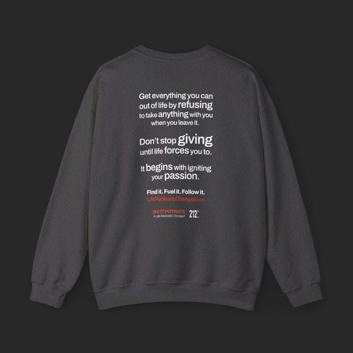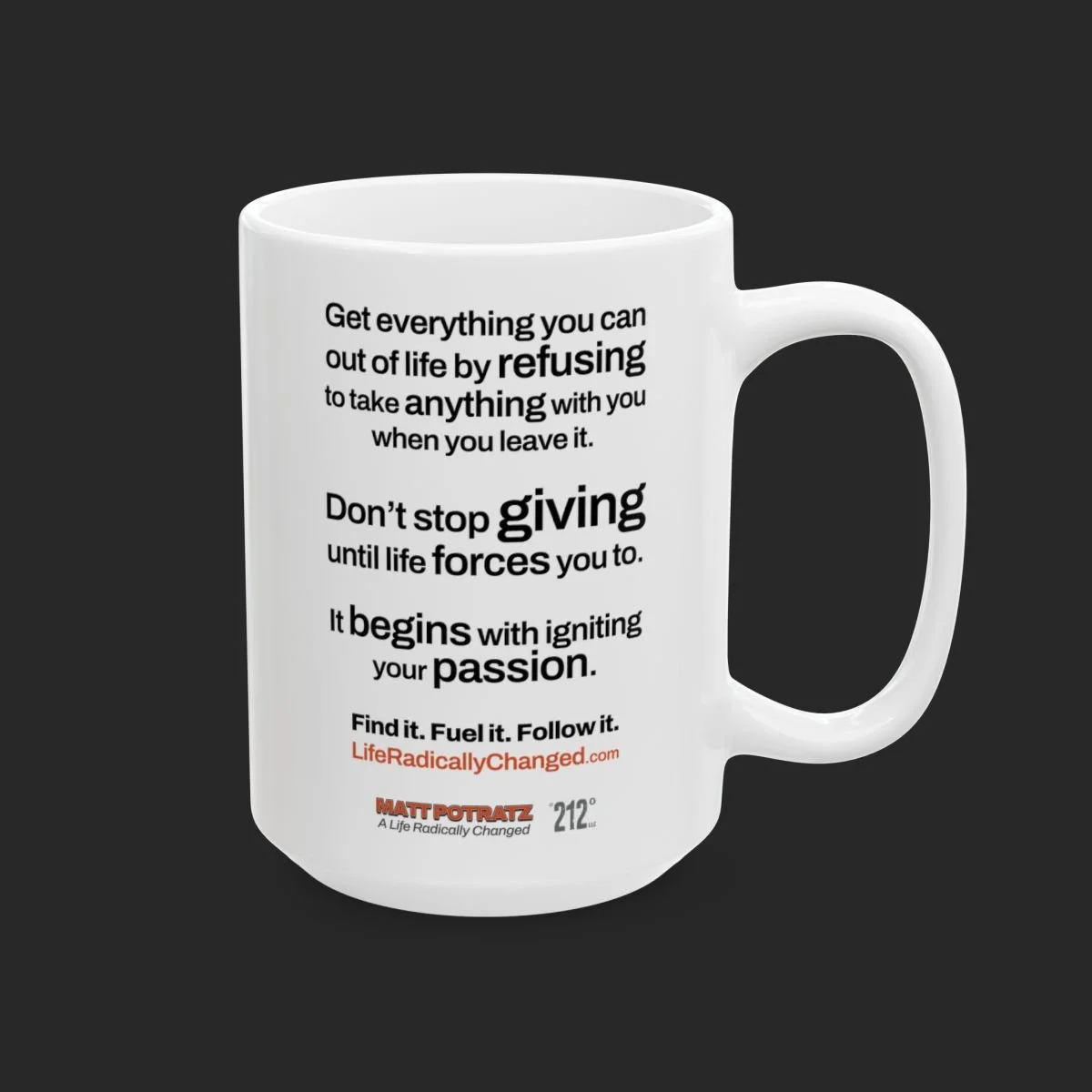 Categories: All Books Hardcover ePUB Apparel Tees Hoodies Sweatshirts Caps & Hats Polos Household Auto Cups & Mugs Games Tech Posters & Prints The SHOP All | Books | Apparel | Household | Posters & Prints | TWO HANDS Personalized, Signed 5x8 Case-Laminated Hardcover Sale Price: $28.00 Original Price: $32.99 Sale TWO HANDS ePUB (DRM-FREE) Sale Price: $4.99 Original Price: $9.95 Sale IGNITE YOUR PASSION Unisex Softstyle T-Shirt from $18.85 IGNITE YOUR PASSION Women's Softstyle Tee from $20.24 ADVERSITY IS NOT AN OPTION Unisex Heavy Blend™ Hooded Sweatshirt from $45.97 ONE CHANCE AT LIFE Unisex Heavy Blend™ Crewneck Sweatshirt from $40.02 212 DEGREES Unisex Distressed Cap $25.00 212 DEGREES Men's Piqué Polo from $27.22 FIND IT, FUEL IT, FOLLOW IT Matte Posters from $15.00 ADVERSITY IS NOT AN OPTION Tough Phone Case $18.23 212 DEGREES Essos True Wireless Earbuds $32.55 Blackwater Outdoor Bluetooth Speaker $29.73 POWERFUL 10W Wireless Charger $59.90 ONE CHANCE AT LIFE Car Air Freshener $9.95 ADVERSITY IS NOT AN OPTION Puzzle (120, 252, 500-Piece) from $24.08 ADVERSITY IS NOT AN OPTION Tumbler 20oz $36.22 ONE CHANCE AT LIFE CamelBak Eddy® Water Bottle, 25oz $36.47 ADVERSITY IS NOT AN OPTION Stemless Wine Glass, 11.75oz $16.25 ADVERSITY IS NOT AN OPTION Ceramic Mug, (11oz, 15oz) from $9.22 ONE CHANCE AT LIFE Ceramic Mug, (11oz, 15oz) from $9.22 Proceeds from the Life Radically Changed Shop help to support Matt in his continued recovery. Thank you! Don’t see something you’re looking for? Let us know!